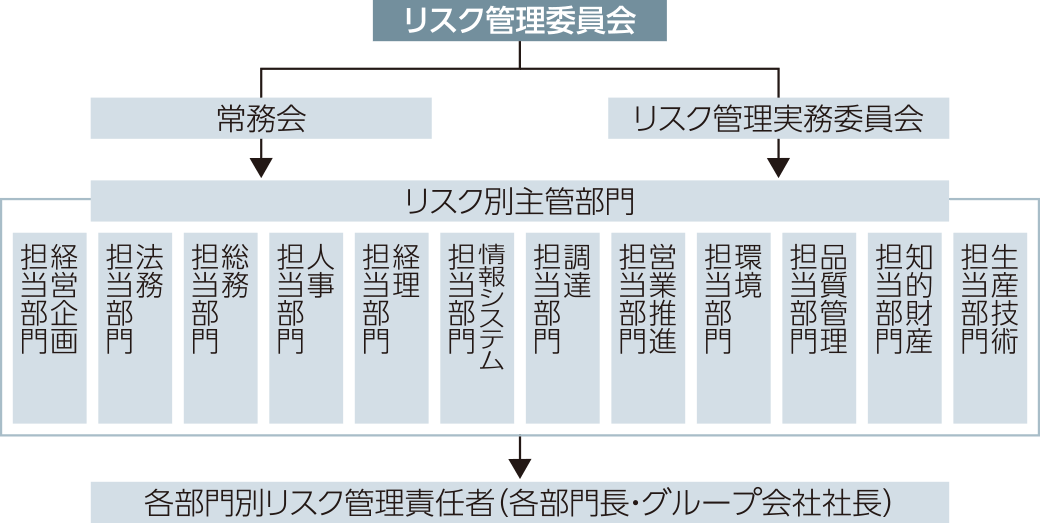 各部門やグループ会社においては、部門長およびグループ会社社長が「部門リスク管理責任者」として各部門・各グループ会社内でのリスク管理・対策を推進しています。