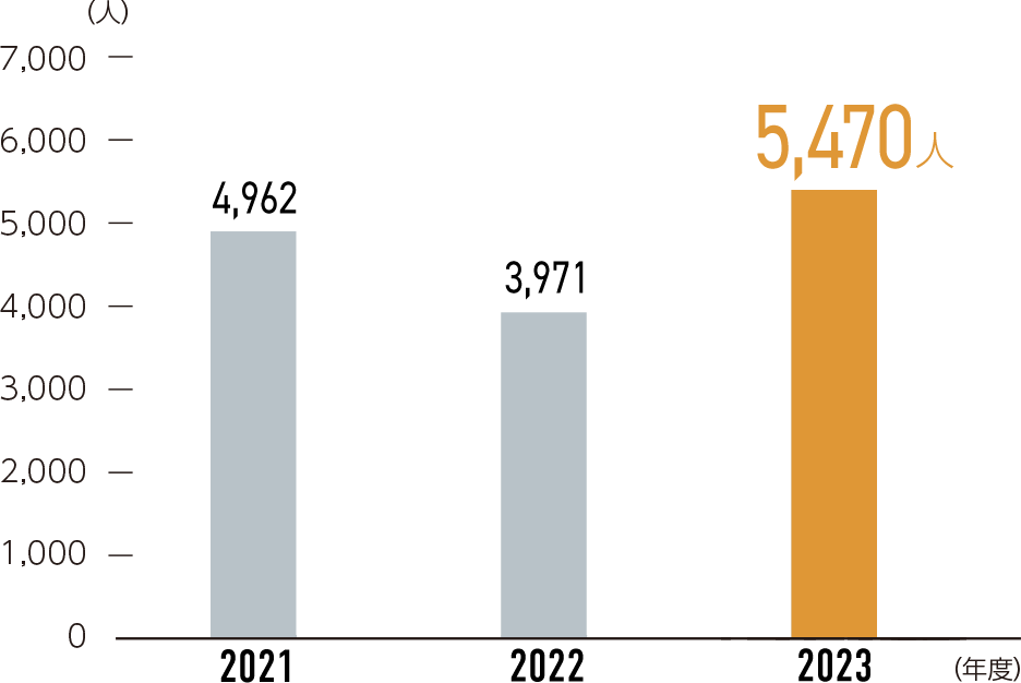 また、グループ・グローバルな人材育成を推進するため、当社グループ企業理念の理解と中長期計画「VISION2025」の目指す姿の共有のための研修や、安全・品質への意識向上のための研修を実施しています。