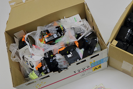 使用済みインクカートリッジを回収して近隣の小学校に寄付しています。ベルマークに交換され、学校の備品購入に役立てられています。