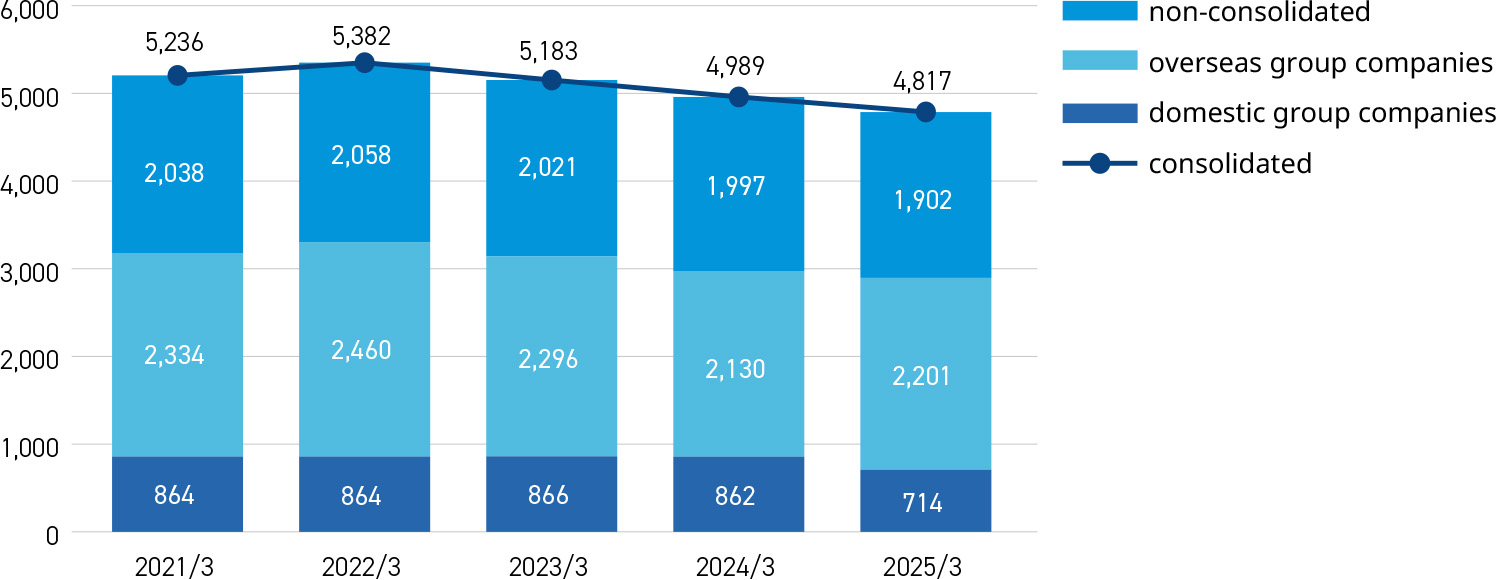 4,817(As of end of March 2025, consolidated) 1,902(As of end of March 2025, non-consolidated)