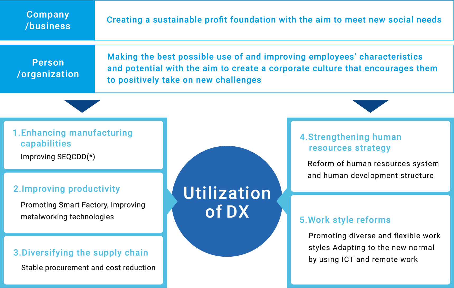 We will address the five themes in strengthening the business foundation, aiming for company growth amid major changes in the business environment.