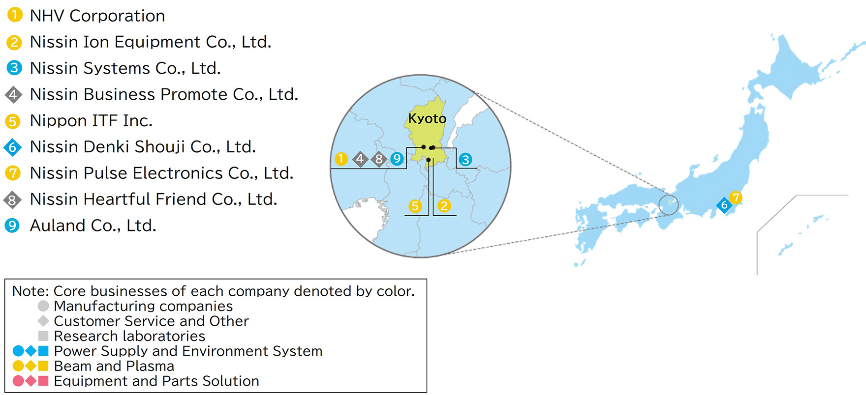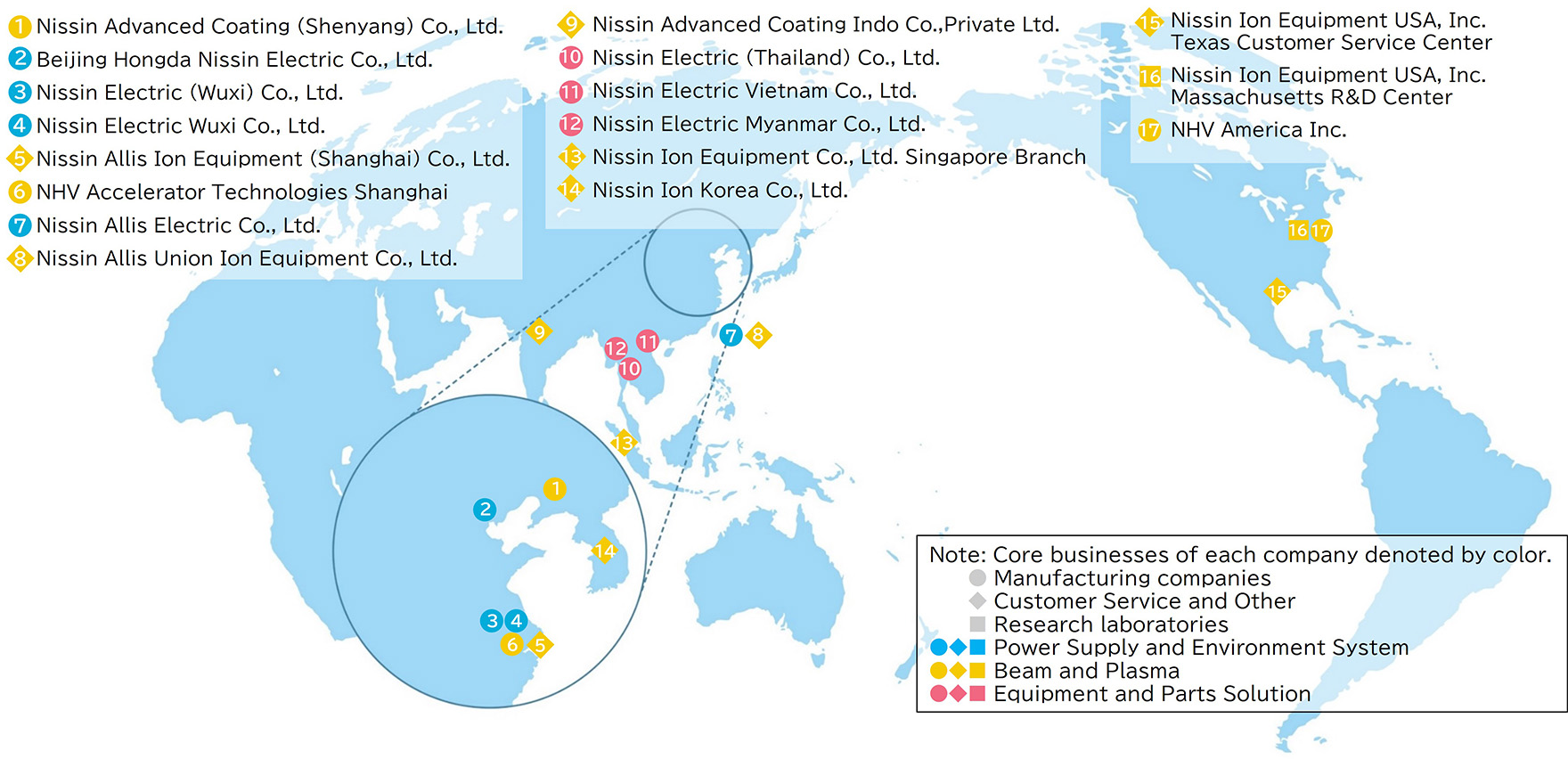 The Nissin Electric Group has concentrated its efforts on manufacturing, embracing the "Venture Spirit" fostered since our founding and proactively learning from different foreign cultures and techniques. Many customers in Japan and abroad use its unique products, which embody technological essence and are among those with a leading market share.