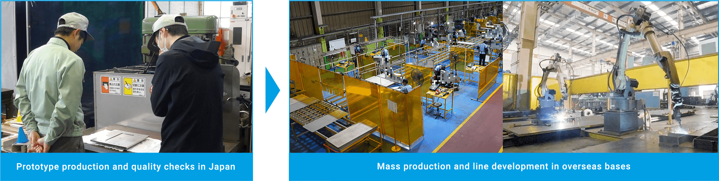 We have built a framework for dependable overseas production with reduced traveling time for personnel and products and smooth mass production startup in an overseas country.
