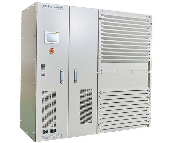 Power conditioners for storage battery consist of an AC-DC converter board, outdoor package, and interconnection transformer. The wide DC voltage range (550 to 1000) ensures applicability to various storage batteries (e.g., lithium-ion batteries, lead-acid batteries, redox flow batteries, NAS® batteries).