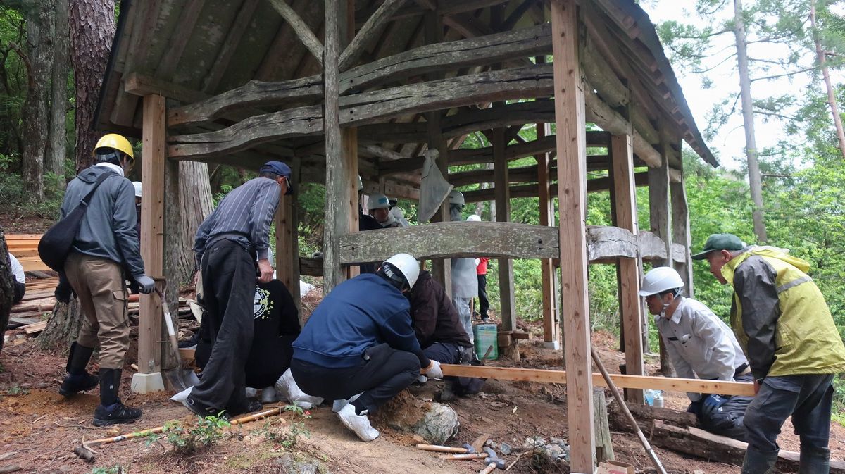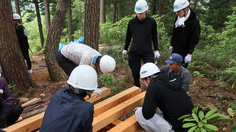 2025年5月の活動では、展望台の修復では地元工務店の方の協力のもと、木材の加工や柱の補強作業などの大工仕事も社員の手で実施。