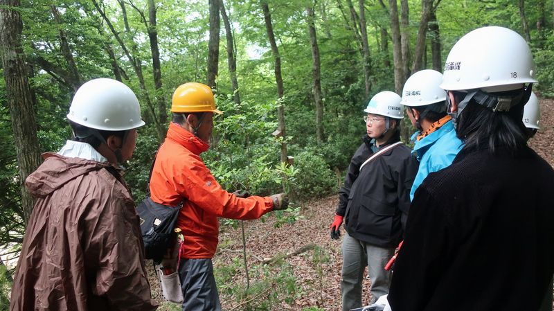 遊歩道の整備では展望台までの道にかかる草木の剪定などを行っており、その道中では森林インストラクターの方が樹木の違いや、日本にはどんな樹種の木があり、どんな使われ方をしているのか歴史も交えて説明する場面もありました。